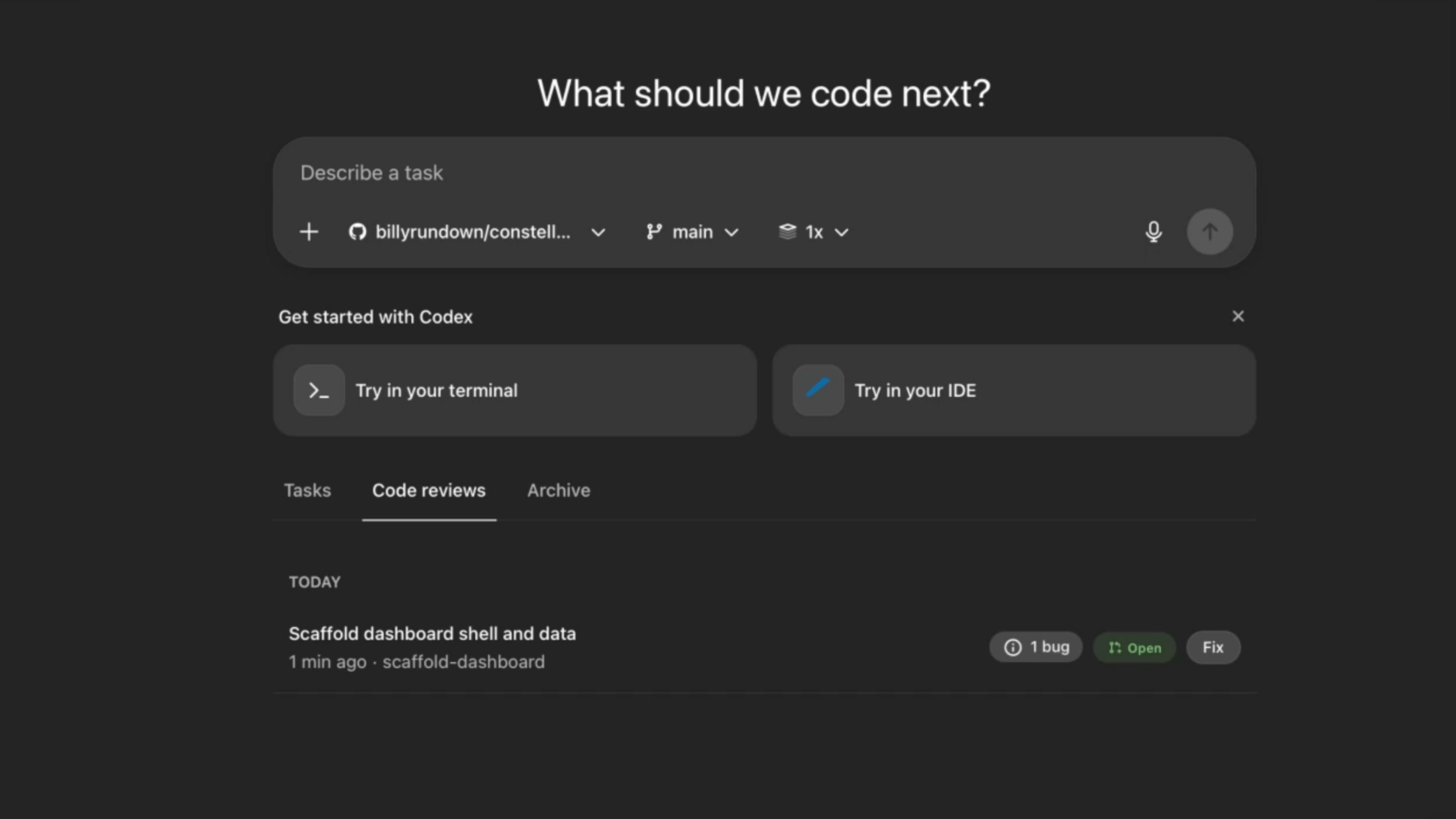 Push the project to GitHub and connect it to Codex to access from anywhere, and enable automatic PR reviews so every pull request is reviewed in the cloud