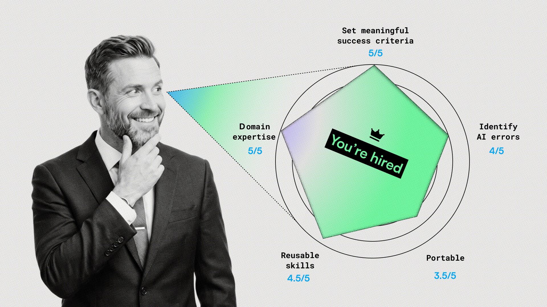 Finally, the team has to move from doing the “grunt work” to designing the logic. People become the architects and referees who set the standards and provide the final human sign-off — not replaced by AI, but upgraded to manage it.