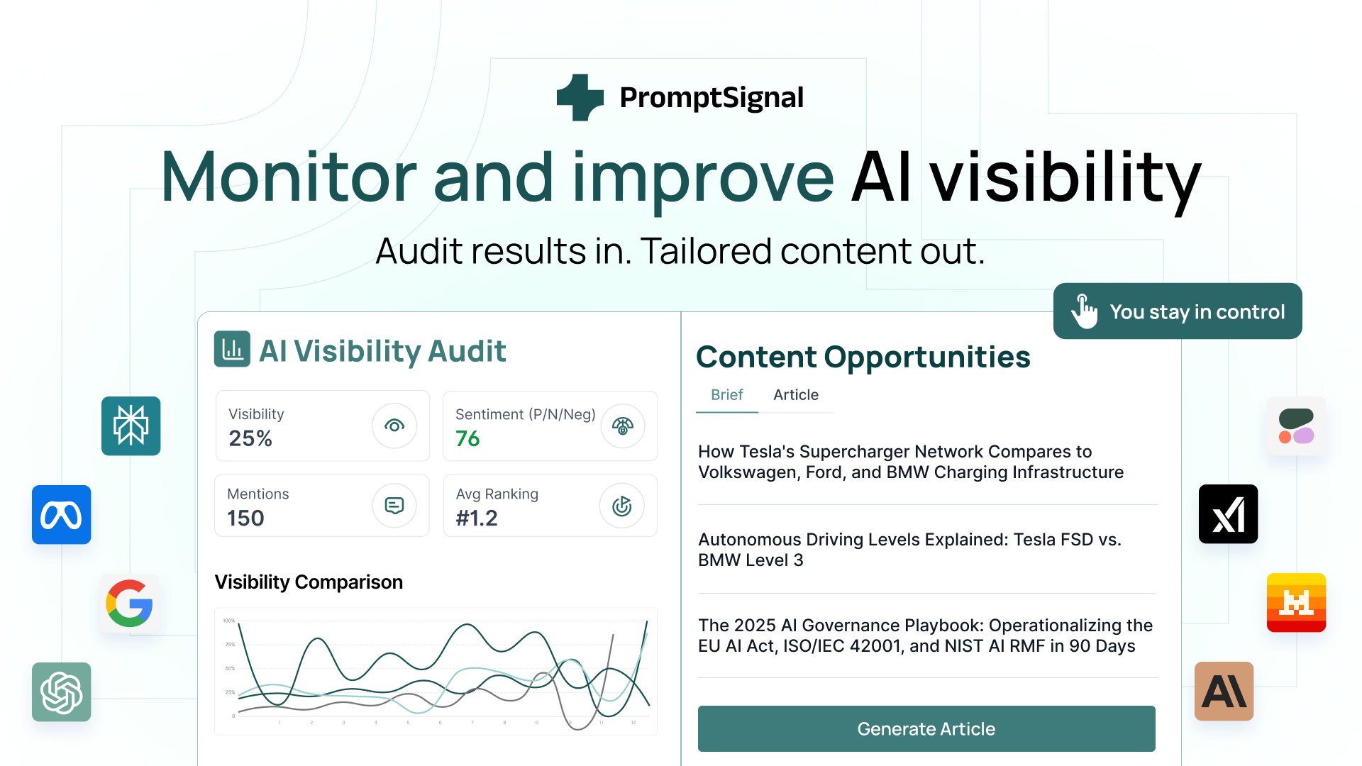 The Rundown: PromptSignal is an AI visibility platform that shows how often you appear in AI answers and why. It turns performance data into tailored article briefs, then generates full drafts you can edit or directly publish.