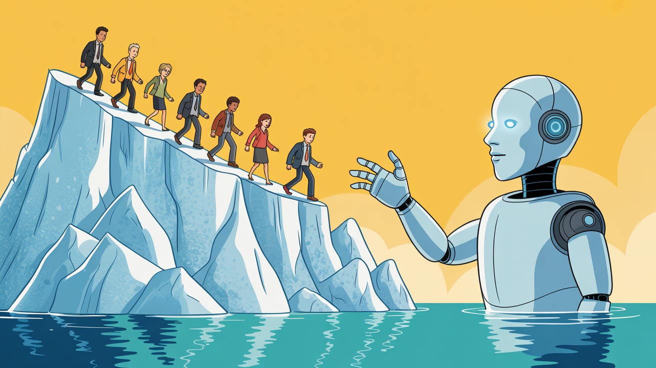 Researchers contrast a "Surface Index" of current AI use — 2.2% of wages, mostly in tech — with an 11.7% "Iceberg Index" of tasks already automatable.