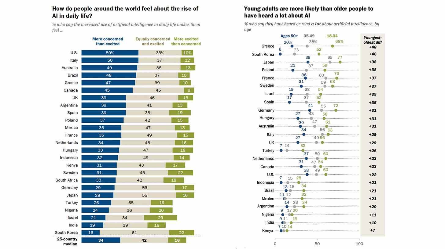 50% of respondents in the U.S., Italy, Australia, and Greece report anxiety over rising AI use, with Israel, South Korea, and Sweden emerging most optimistic.