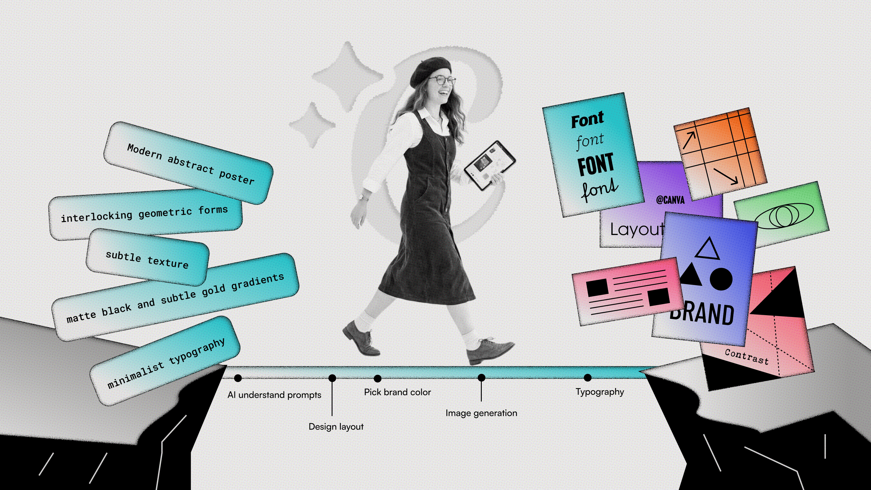 If you were to use this prompt in Canva AI 2.0, you'd see it share back its thought process on how to tackle the design. It's combining language model reasoning to interpret the prompt with its design training to execute it... And it's not re-assembling templates, it's generating entirely new editable elements (coming from Canva’s 2024 acquisition of Leonardo.ai) to fulfill your vision.