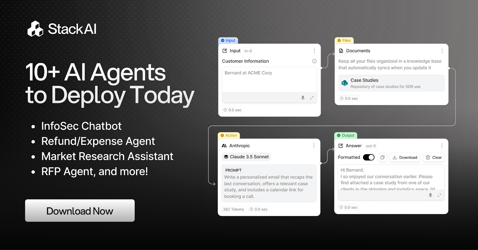 The Rundown: Deploy 10 AI agents that actually drive ROI on StackAI—the secure enterprise AI toolkit trusted by finance, legal, ops, & IT teams who move 80% faster than the rest.
