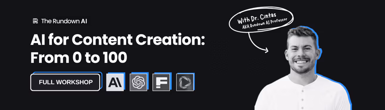 Join our next workshop today at 4 PM EST with Dr. Alvaro Cintas, The Rundown’s AI professor. You'll learn how to use the latest AI tools to take your content creation to the next level.