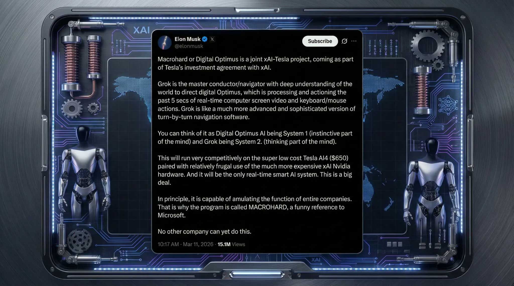 🤖 Musk revives Macrohard as a joint xAI-Tesla project