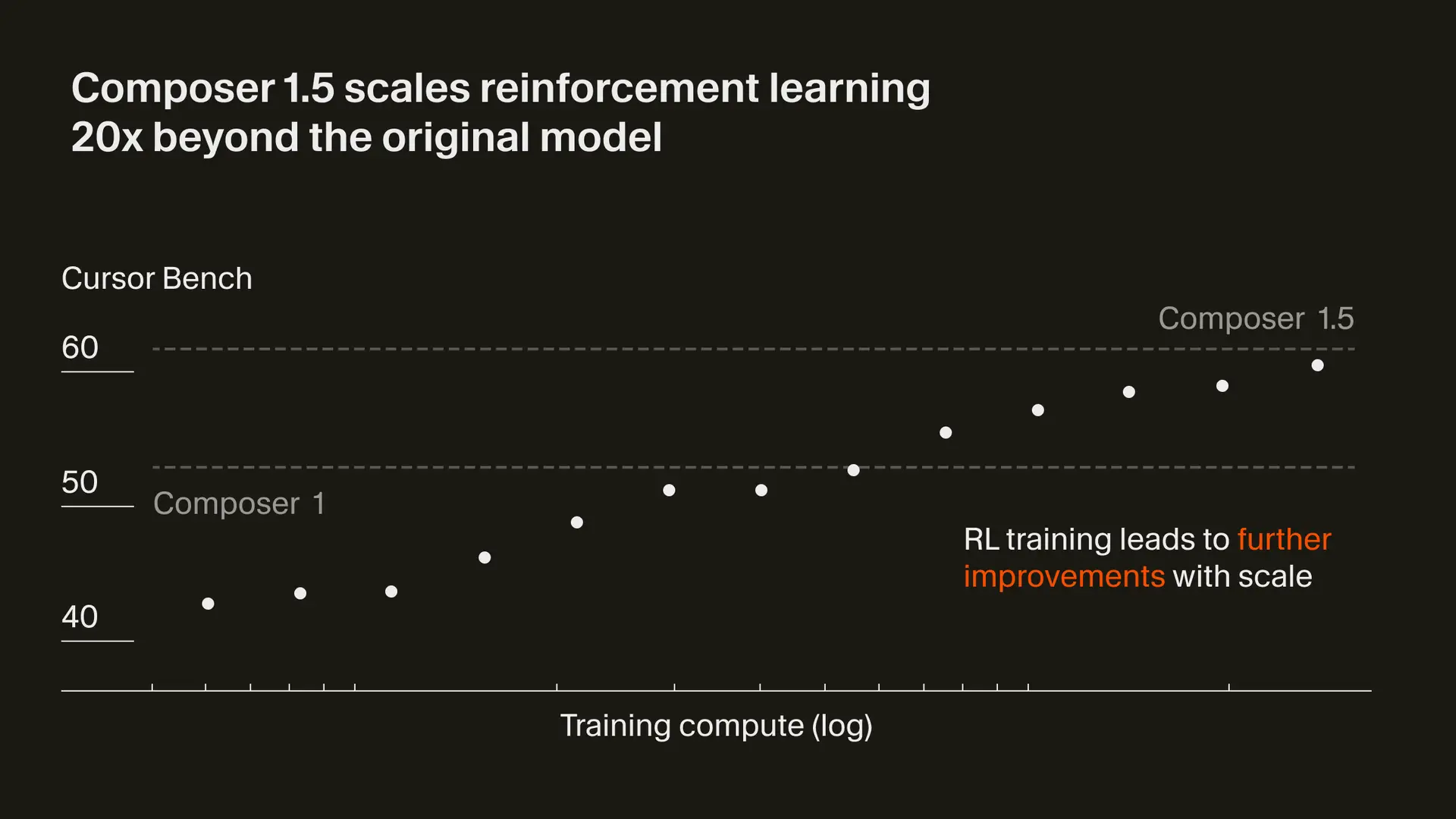 Composer 1.5 - Cursor's updated in-house agentic coding model with increased performance and speed